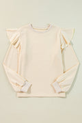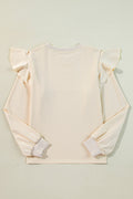 Jet Stream Solid Color Ruffled Shoulder Long Sleeve Blouse