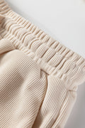 Jet Stream Solid Color Textured Knit Drop Shoulder Pullover Drawstring Shorts Set