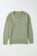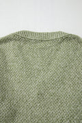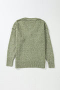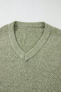Jungle Green Loose Eyelet V Neck Drop Shoulder Sweater