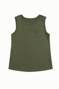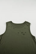 Jungle Green Solid Color Distressed Holes Crew Neck Tank Top