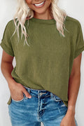 Sale Jungle Green Textured Knit Exposed Stitching T-shirt