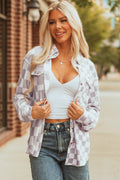 Khaki Checkerboard Flap Pocket Button Front Shacket