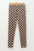 Khaki Checkered Pattern High Waist Skinny Leggings