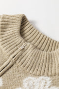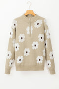 Sale Khaki Floral Pattern Half Zip Drop Shoulder Sweater