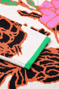 Khaki Floral Pattern Knit Quarter Zip Stand Neck Sweater