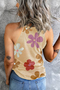 Sale Yellow Boho Floral Pleated Buttoned Front Tank Top