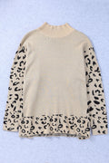 Khaki Leopard High Neck Side Slit Oversized Sweater