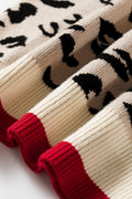 - This fall winter, leopard sweater is very fashionable.Leopard pattern knit give a bold wild touch.Contrast striped trim accents cuffs and hem sharply.V-neck design offers flattering elongation for layering.