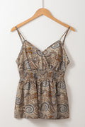 Sale Khaki Paisley Printed Spaghetti Strap V Neck Smocked Babydoll Tank Top