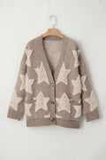 Khaki Sherpa Star Pattern Textured Sweater Cardigan with Pockets