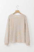 Sale Khaki Stripe Round Neck Drop Shoulder Long Sleeve Top