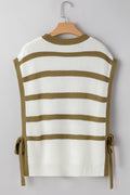 Khaki Stripe Tie Open Side Sweater Knitted Top
