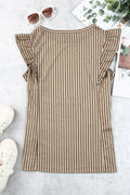 Sale Parchment Textured Frilly Trim V Neck Sleeveless Top