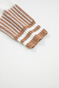 Khaki Two Tone Striped Patchwork Drop Shoulder Loose Sweater