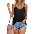Sale Plain Daily Casual Sleeveless V Neck Regular Tank Top