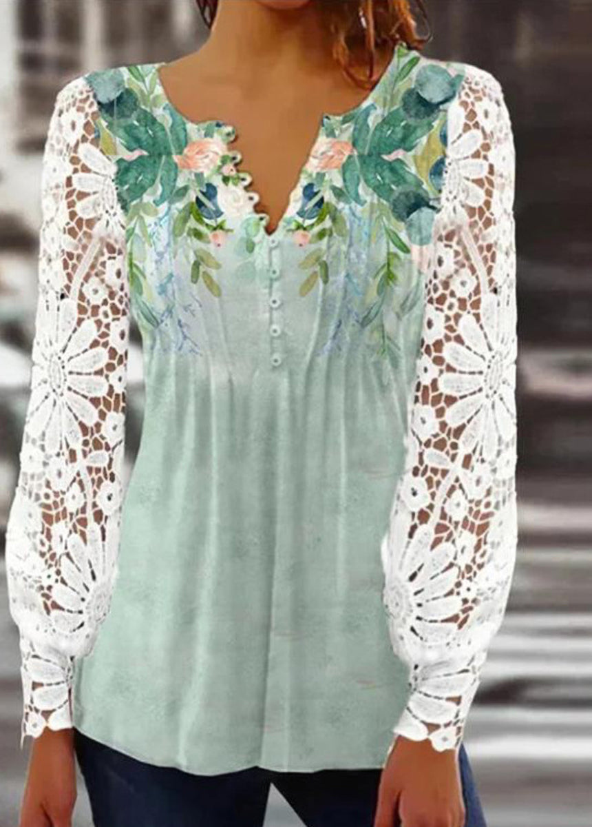 Sale Casual Contrast Lace Round Neck Long Sleeve T-Shirt