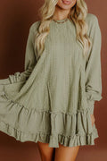 Laurel Green Jacquard Frilled Ruffled Long Sleeve Mini Dress
