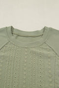- Casual style feels extra sweet in this eyelet mini dress.The casual dress is solid colored with a contrast texture patchwork.Made from quality cotton fabric with good stretch in a relaxed fit.This mini dress has a round neck, long sleeves, and a ruffled hem.