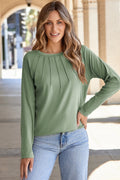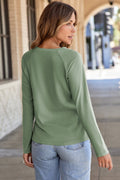Laurel Green Solid Color Seam Detail Raglan Long Sleeve Top