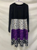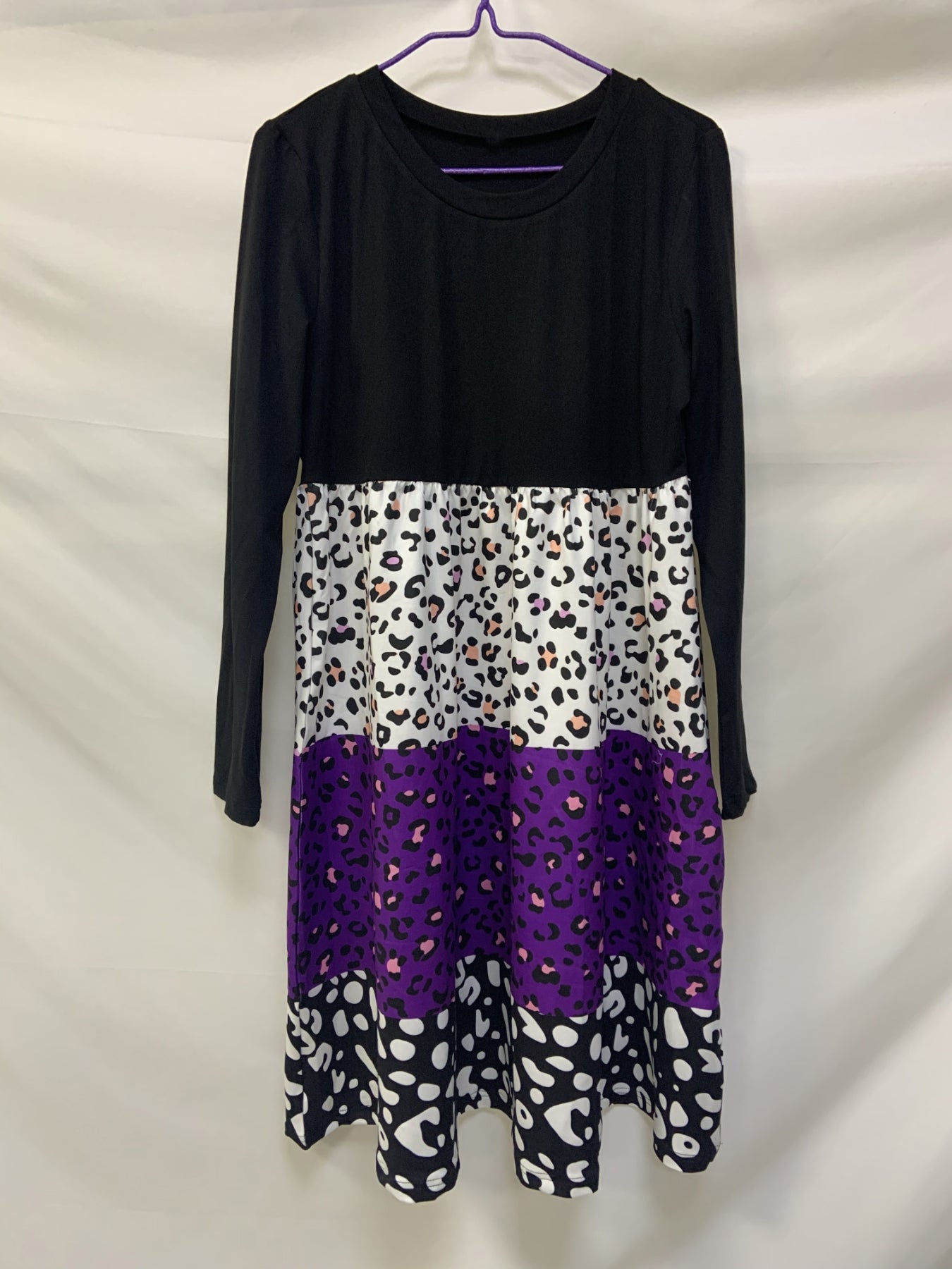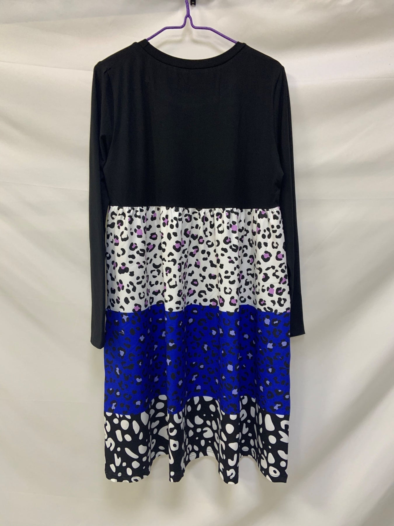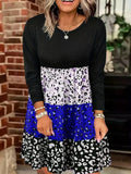 Sale Leopard Print Color Block Dress, Casual Crew Neck Long Sleeve Dress