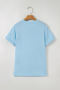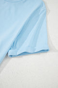 Sale Light Blue Bright Casual Plain Crew Neck Tee