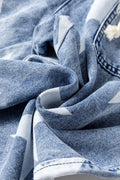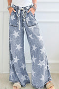 Sale Light Blue Star Print Light Wash Drawstring Elastic Waistband Wide Leg Jeans