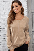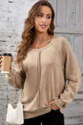 Sale Light French Beige Solid Waffle Knit Patchwork Raglan Sleeve Sweatshirt