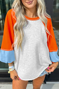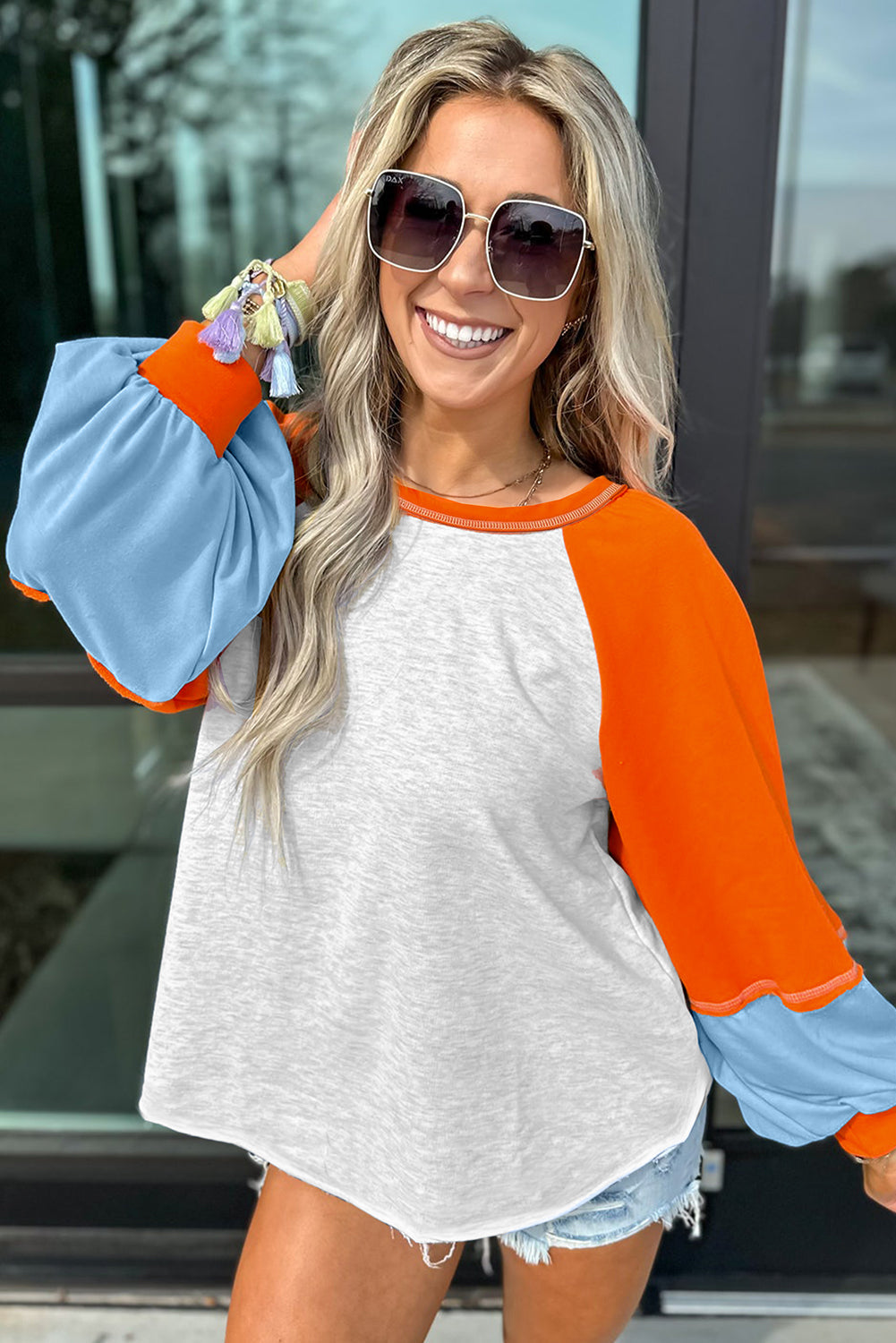 Light Grey Color Block Raglan Sleeve Contrast Stitching Loose Fit Top