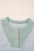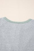 Sale Light Grey Color Contrast Ribbed Loose Fit Long Sleeve Top
