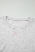 Light Grey Girly Bow Embroidered Detail Puff Sleeve Pullover 2pcs Short Set