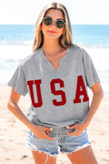 Light Grey USA Lettering Patch Notched Neck Loose Tee