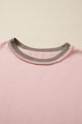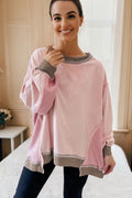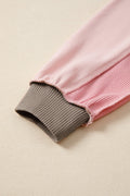 Light Pink Color Block Mix Texture Waffle Patchwork Oversize Sweatshirt
