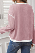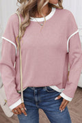 Light Pink Contrast Color Trim Knit Drop Shoulder Loose Top