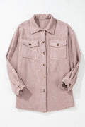 Light Pink Corduroy Flap Pocket Button Up Shacket