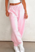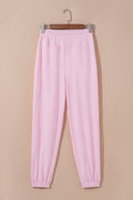 Sale Light Pink Drawstring Elastic Waistband Solid Color Jogger Pants