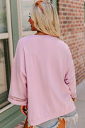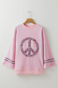 Sale Light Pink Floral Peace Sign Graphic Drop Shoulder Wide Sleeve Casual Top