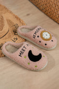 Light Pink Moon & Clock Pattern Fuzzy Home Slippers
