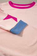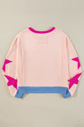 Light Pink Star Patchwork Exposed Seam Oversized Sweatshirt