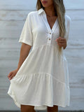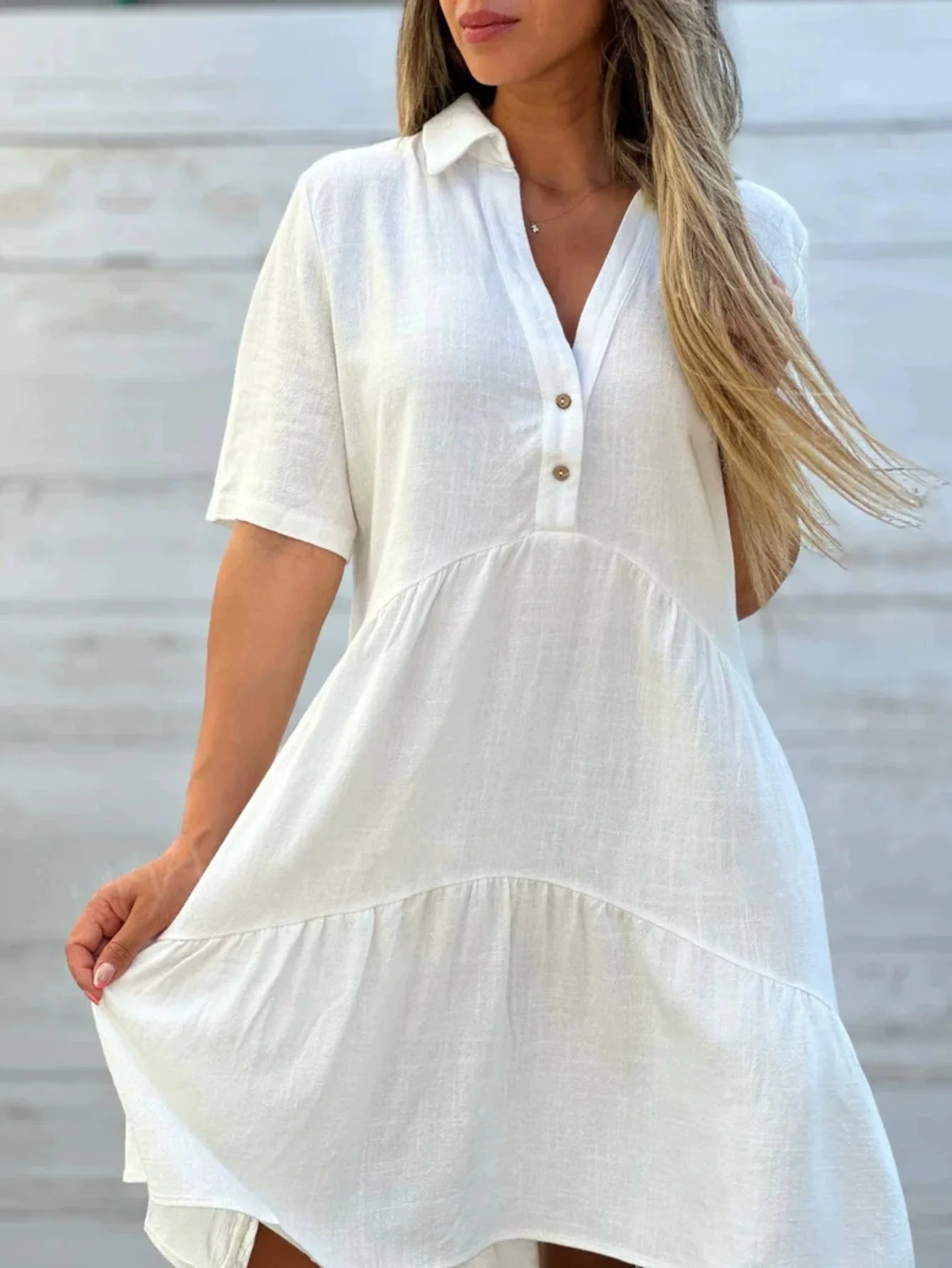 Linen Women's Summer Dress - Loose Fit, Short Sleeve, Lapel Collar, Button Front
