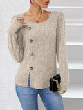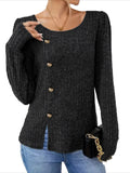 Sale Striped Botton Crew Neck T-Shirt, Elegant Long Sleeve T-Shirt