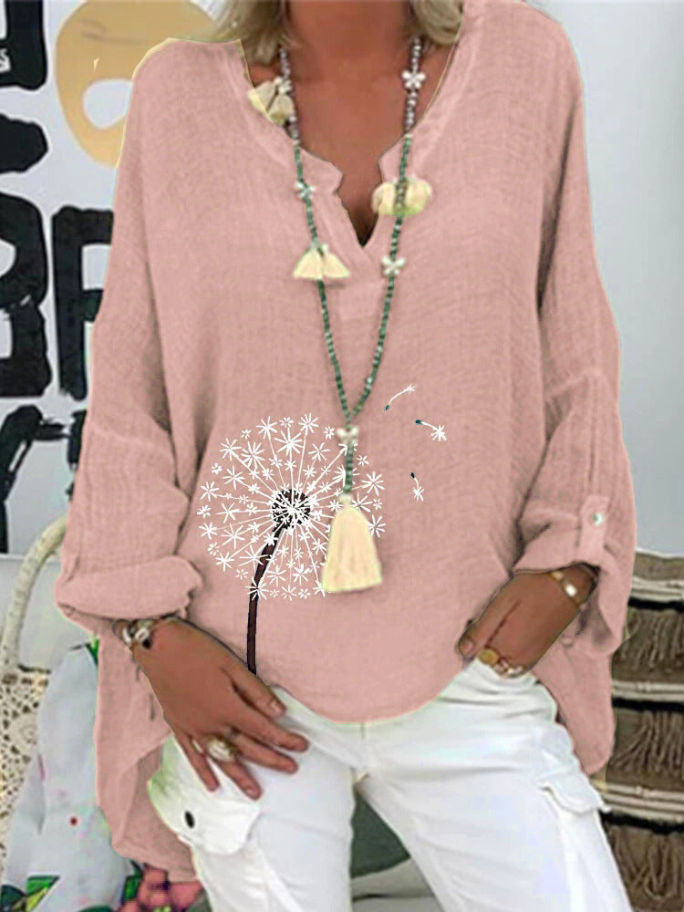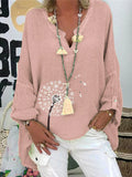 Long Sleeve Floral Print Loose V-Neck Shirt