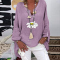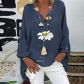 Sale Long Sleeve Floral Print Loose V-Neck Shirt