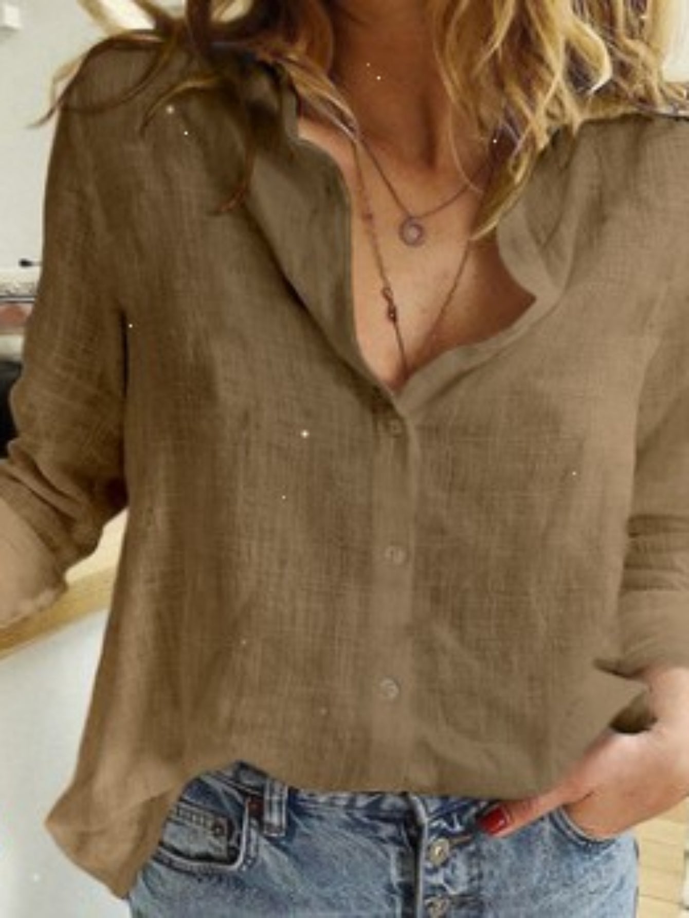 Long Sleeve Linen Shirt, Casual Button Up Shirt