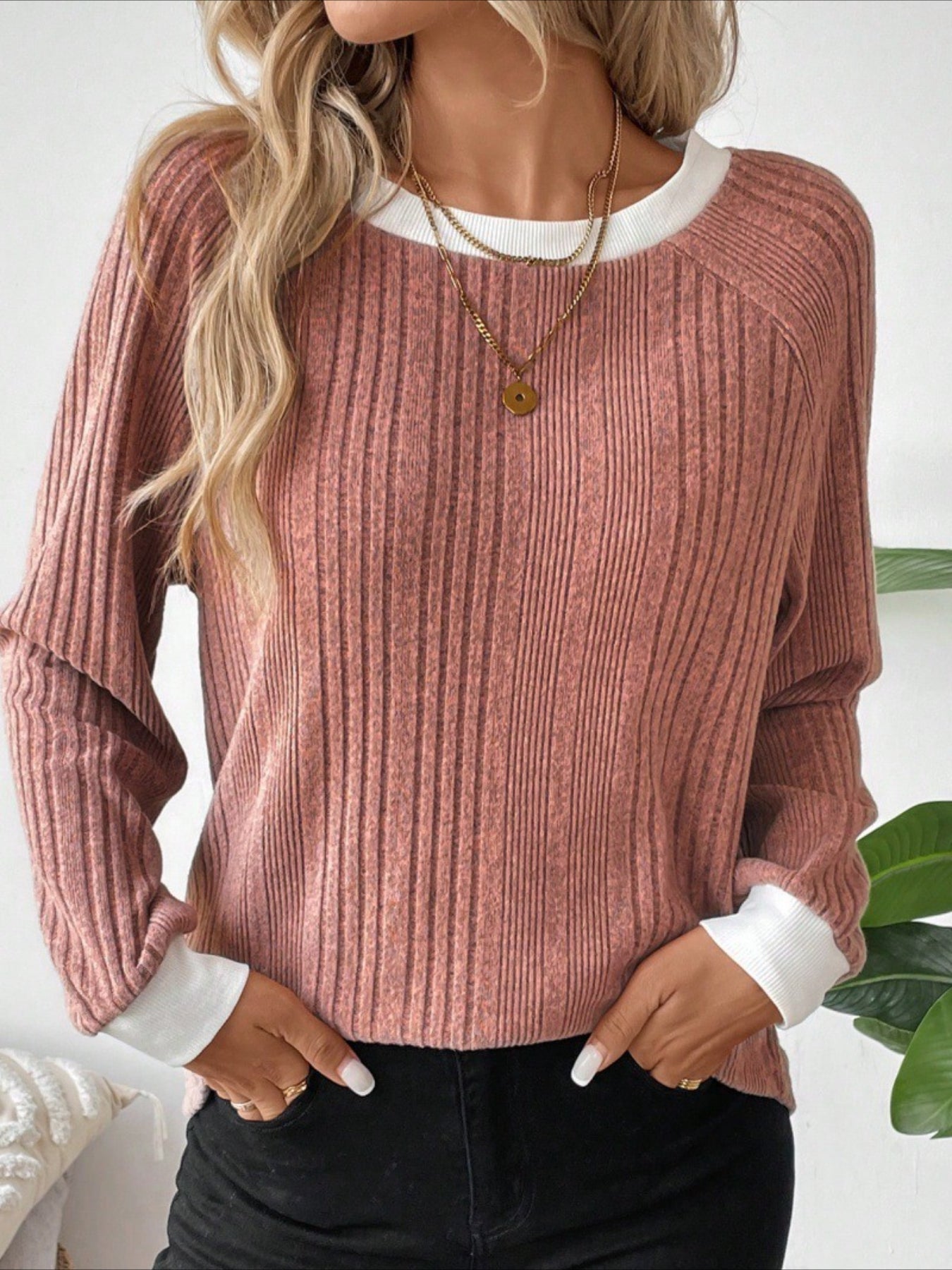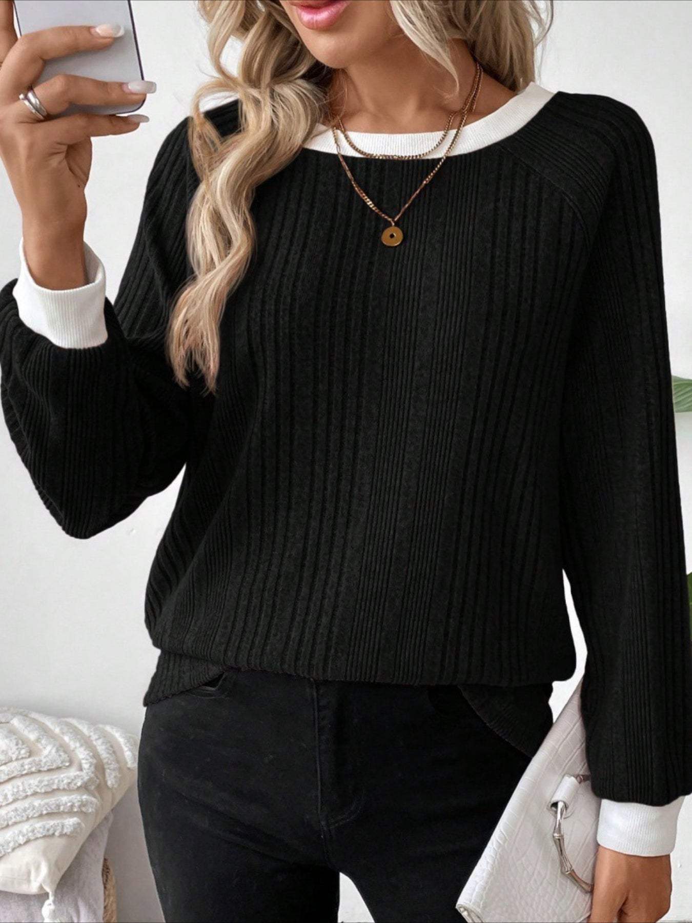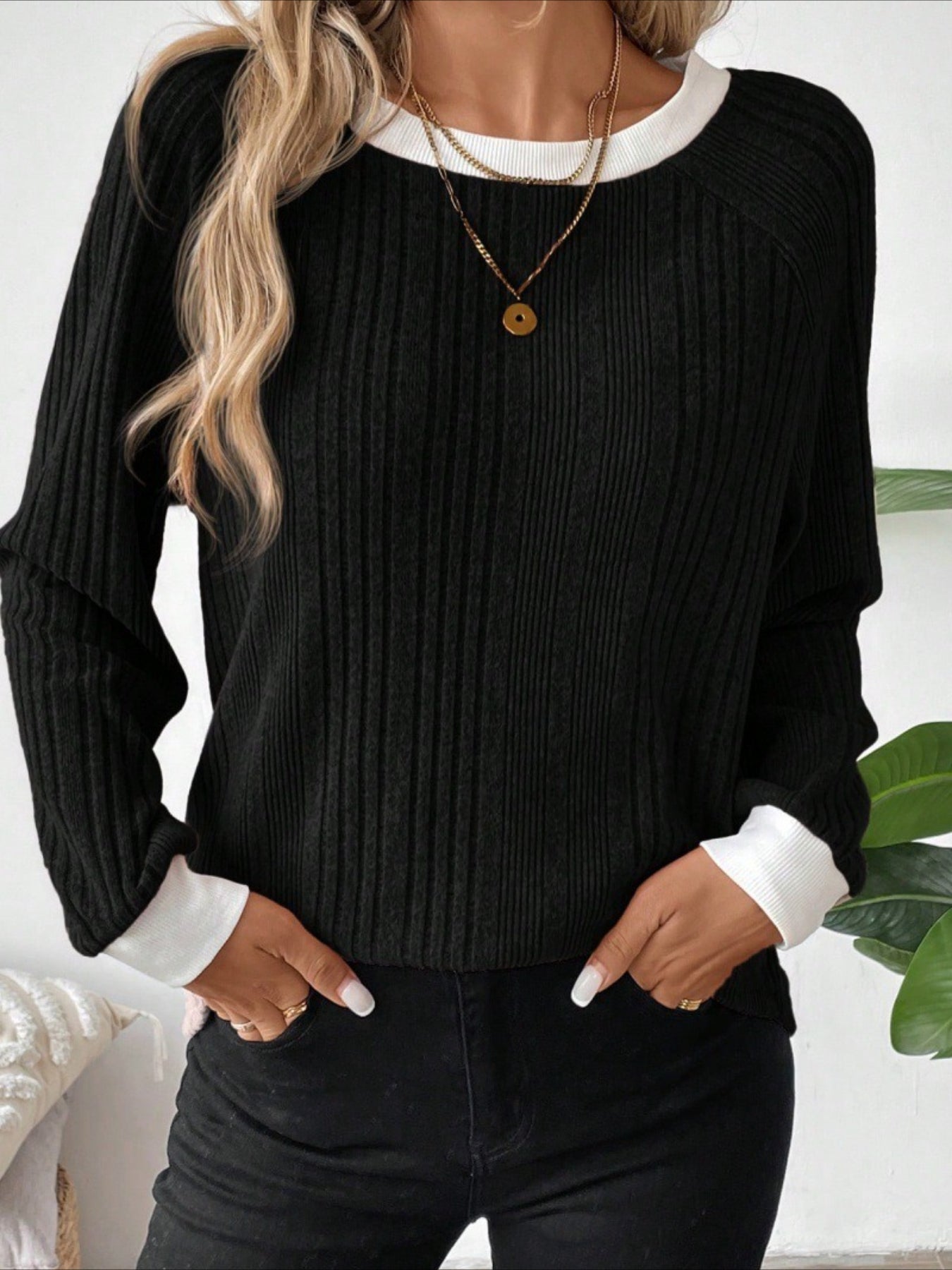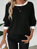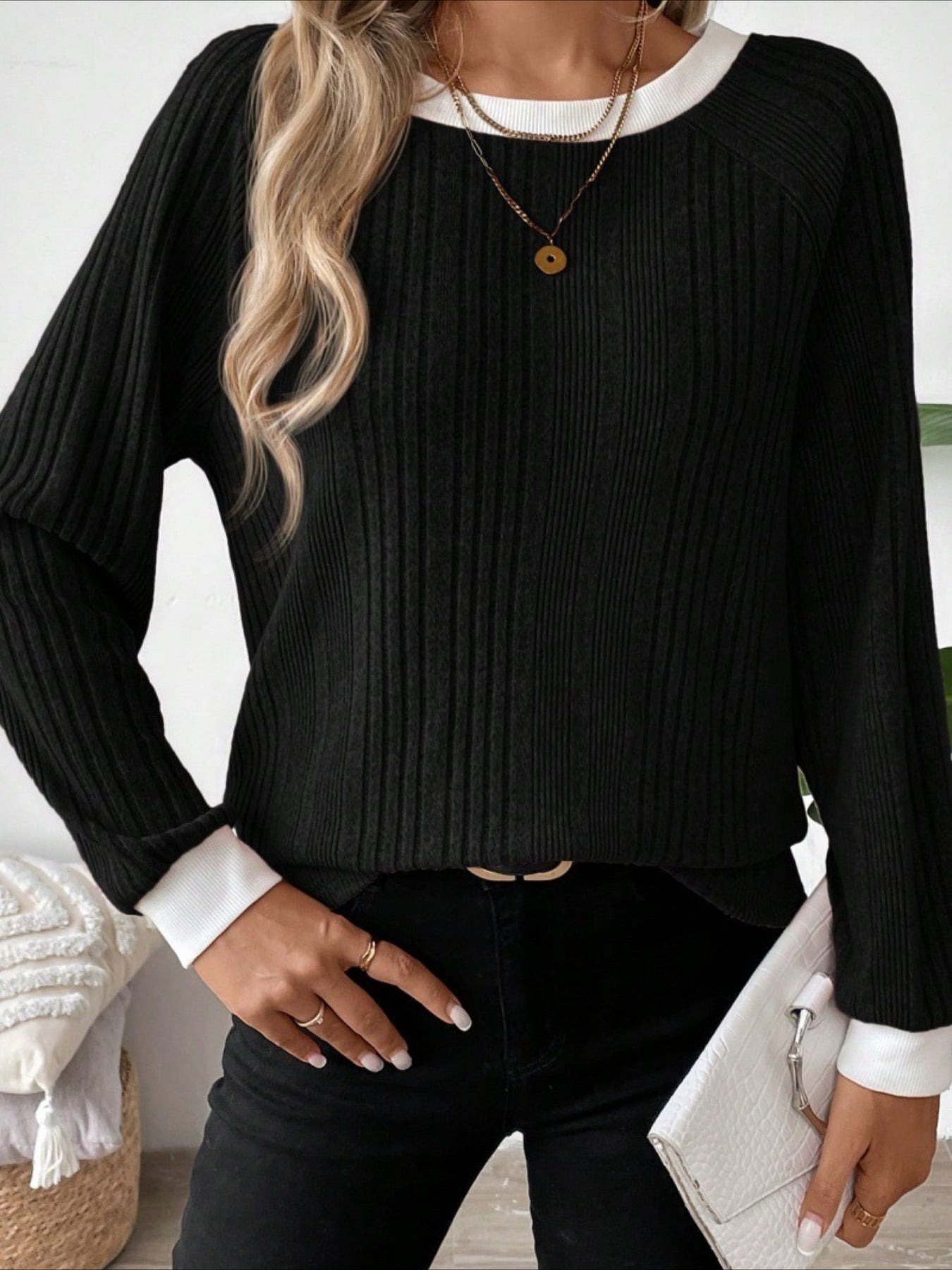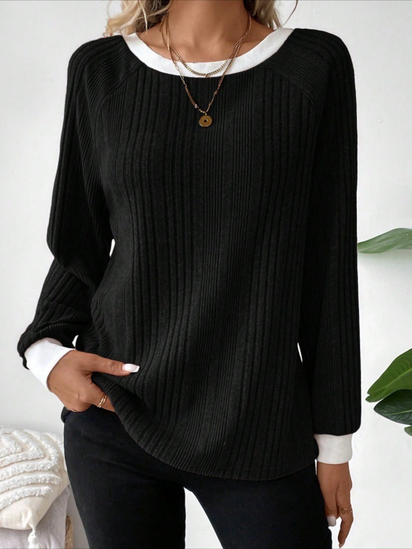 Long Sleeve Pullover with Elegant Contrast Collar Top