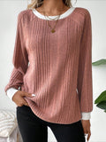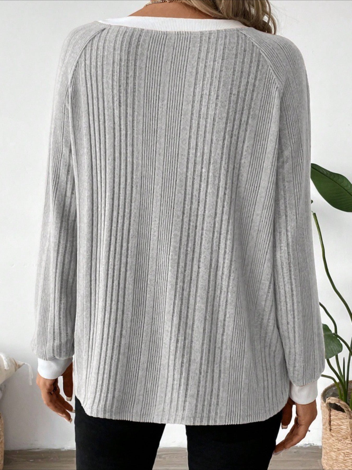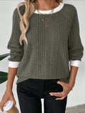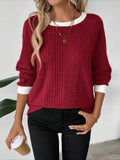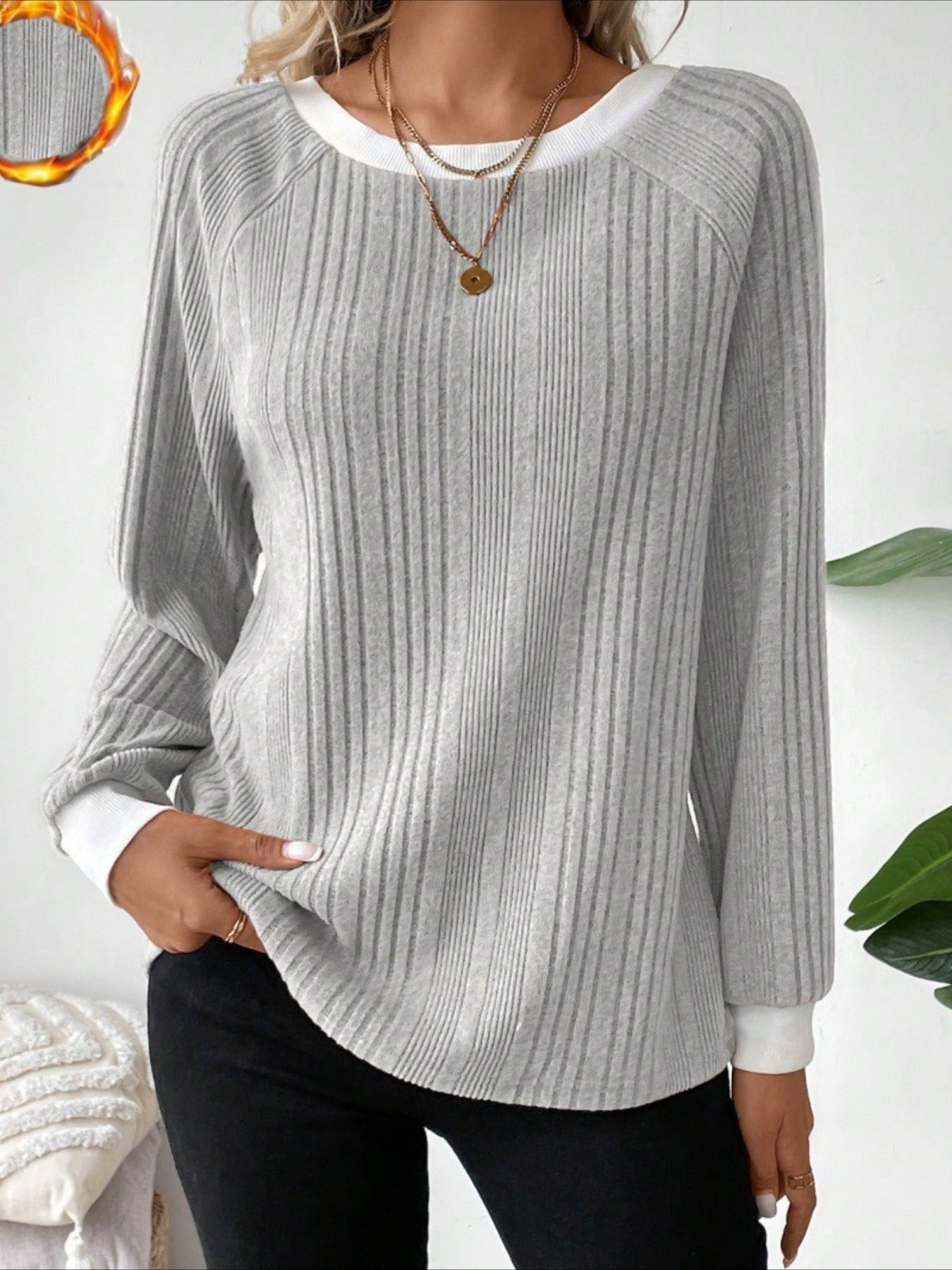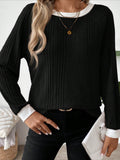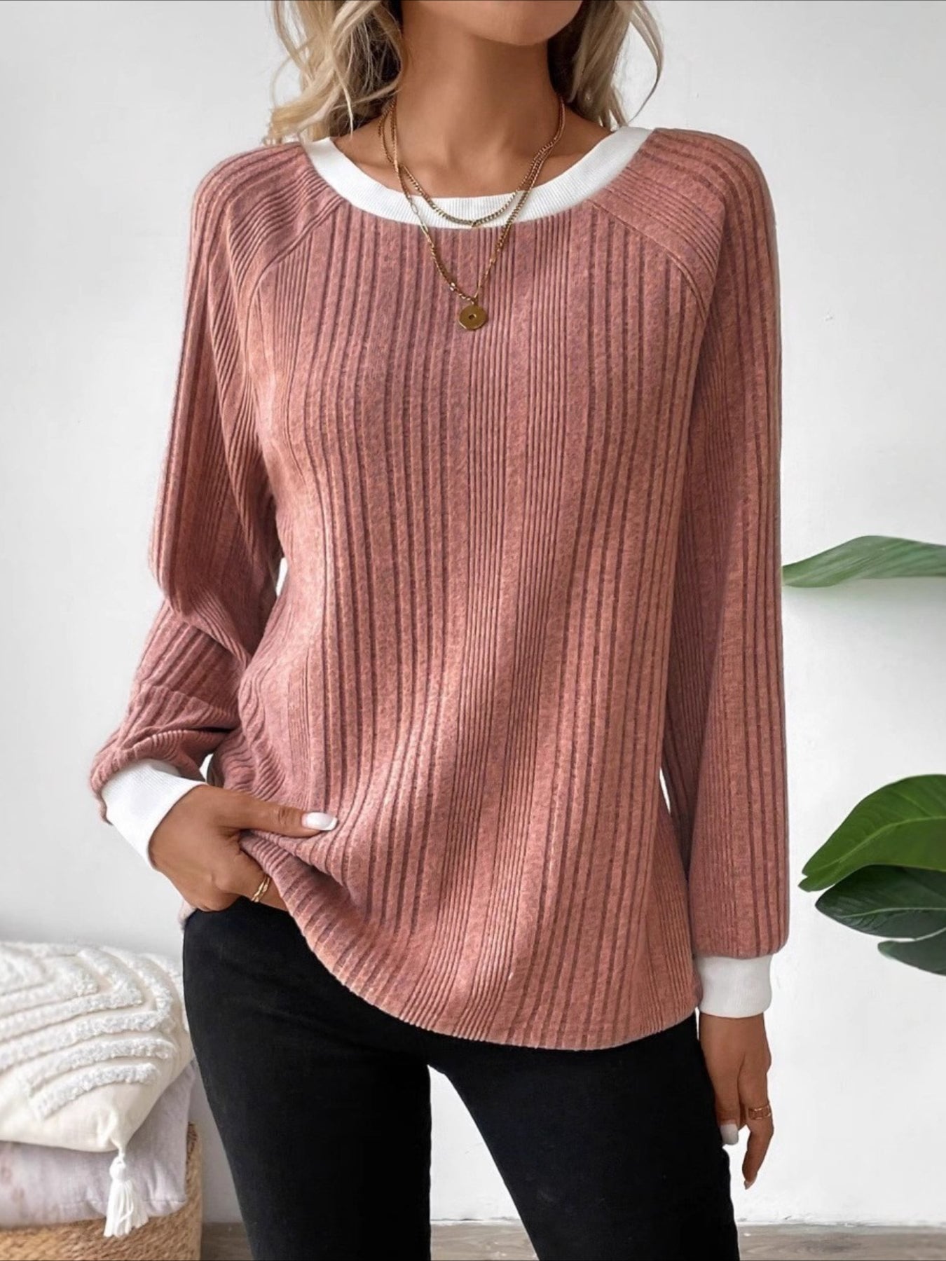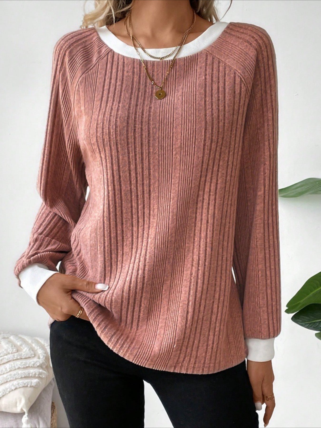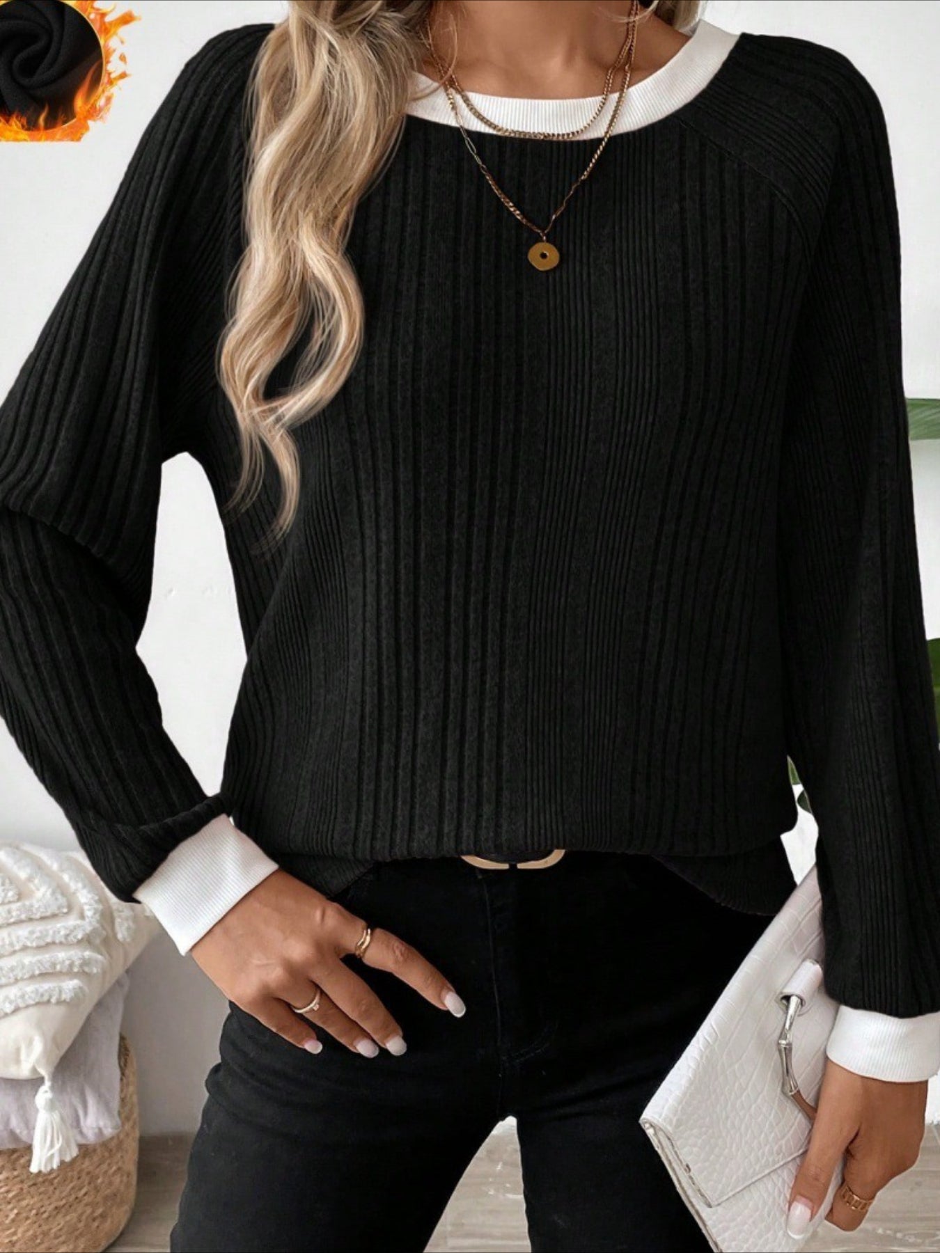 Long Sleeve Pullover with Elegant Contrast Collar Top
