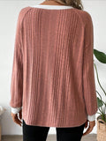 Sale Casual Contrast Lace Round Neck Long Sleeve T-Shirt