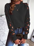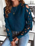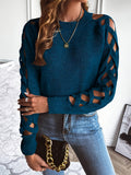 Long Sleeve Solid Color Openwork Pullover Sweater