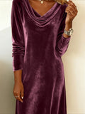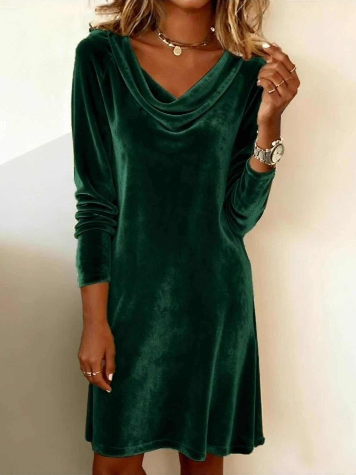 Long Sleeve Spring/Fall Golden Plain Split Joint Mini A-Line Fit & Flare Dress
