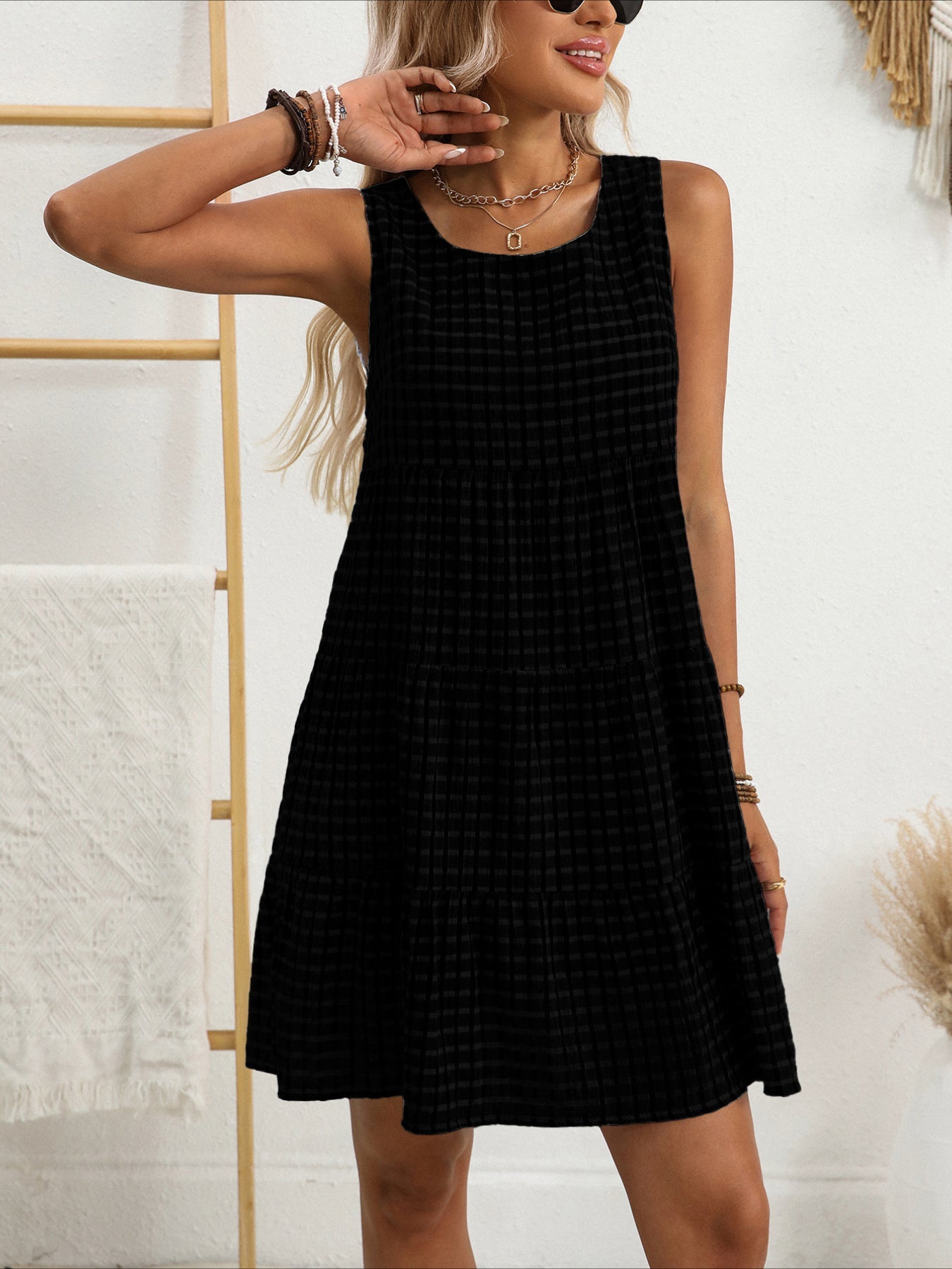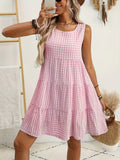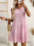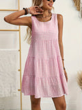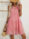 Sale Loose Casual Flowing Sleeveless Plaid Dress