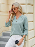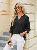 Sale Loose Fit Work V Neck Buttons T-Shirts